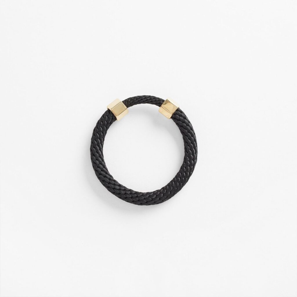 Магнитті жезден жасалған ілгекке бекітілген өрілген арқан және жезден жасалған сақиналар.