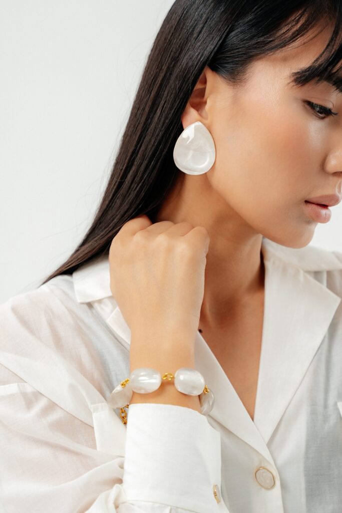 Избегайте распыления духов, нанесения кремов или других жидкостей непосредственно на украшения, так как они могут оставить пятна и повредить золотую фольгу и силиконовые подушечки на серьгах. Снимайте украшения перед купанием, плаванием или интенсивными физическими нагрузками. Регулярно носите жемчуг и опалы, чтобы сохранить их естественное сияние.